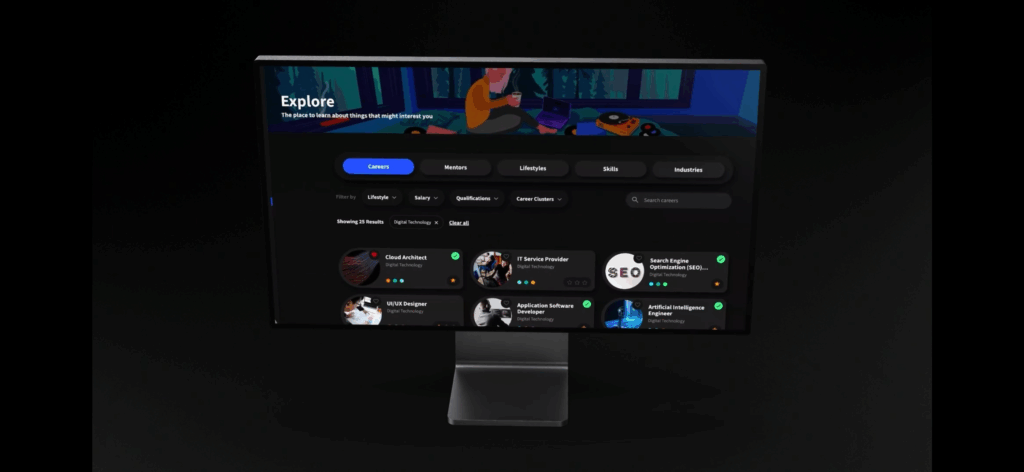 Educators were given a first look at how Find Your Grind’s lifestyle assessment and career library help students connect who they are with what they can become. In just a few minutes, students can identify whether they’re an Explorer, Humanitarian, or Creator — and then see hundreds of career pathways that align with those traits. This approach not only builds self-awareness but helps students visualize futures that feel real, attainable, and exciting.