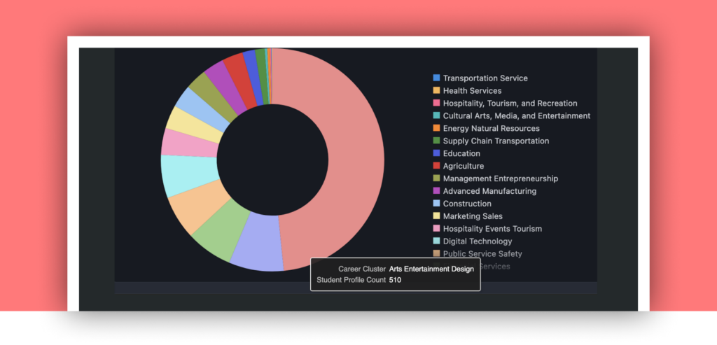 Educators can now filter this report by grade band to see career cluster alignment and better align planning to what students are actually showing interest in.