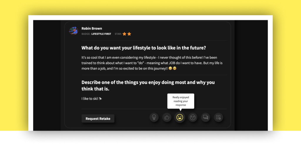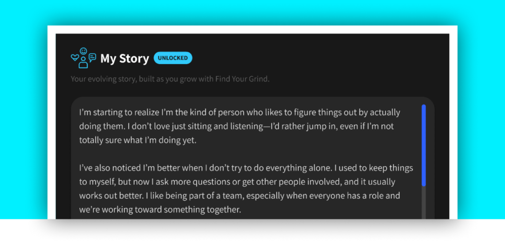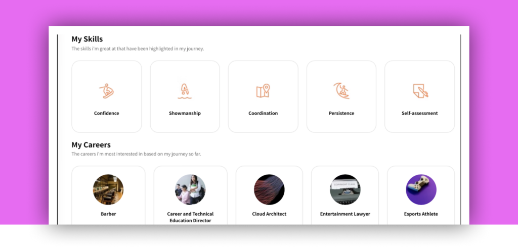 After exploring a career, skill, or mentor badge, students reflect on whether it’s a good fit for them – providing clearer signals to power more relevant, personalized recommendations.